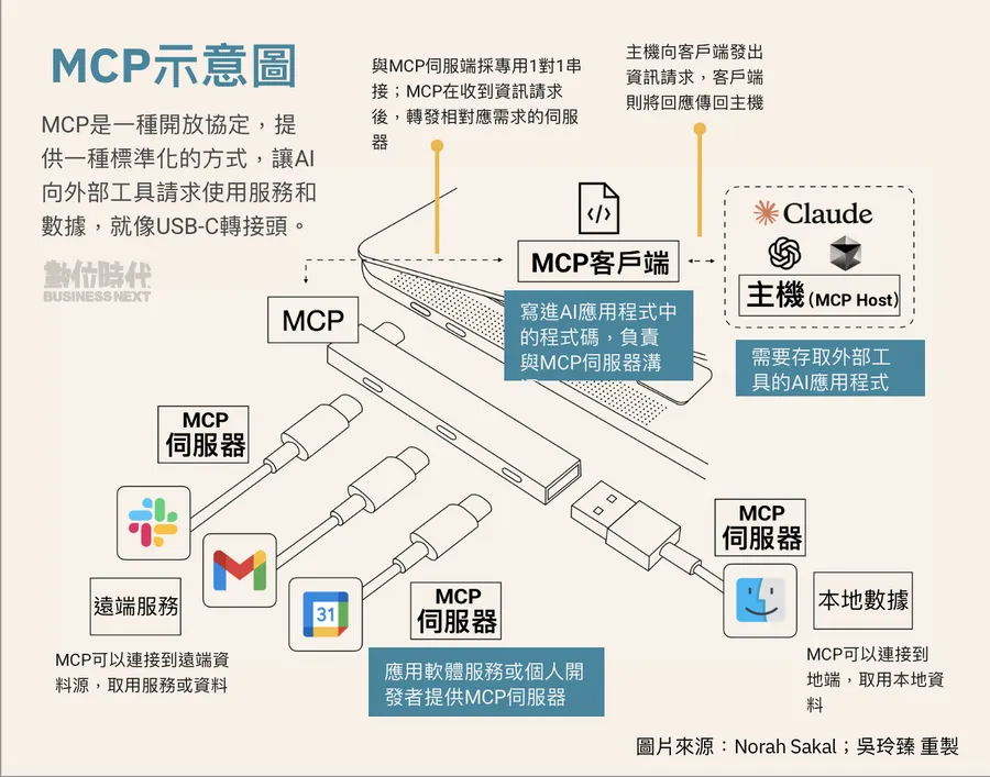 各家產品都會開發自己的 MCP。例如,Gmail 會製作自己的 MCP,Figma 也會製作自己的 MCP,以便使用者能夠使用這些服務。