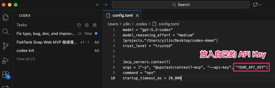 現在,我們要在我們的 Codex 中設定 MCP Server。