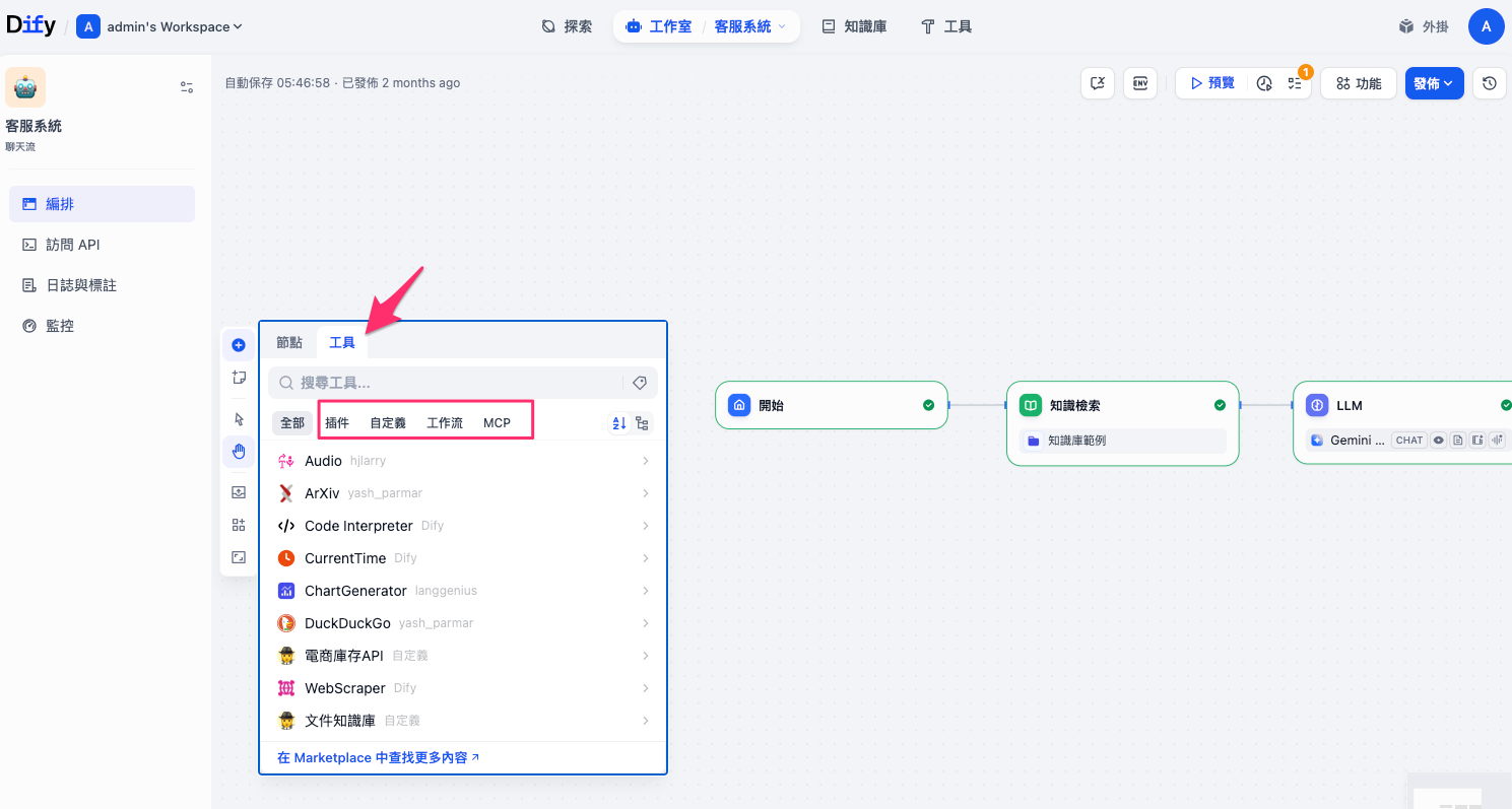 Dify 工具的設計哲學是「讓流程更模組化、可重用」。 而「工作流發布成工具」則是最貼近日常需求的用法: