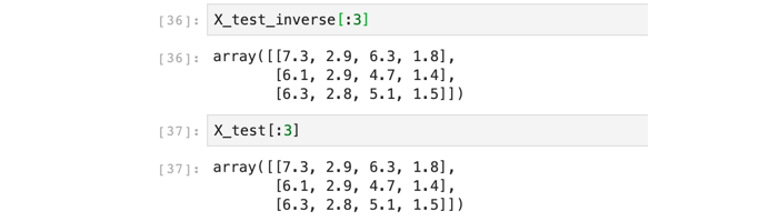 # 將縮放的資料還原 X_test_inverse = scaler.inverse_transform(X_test_scaled)